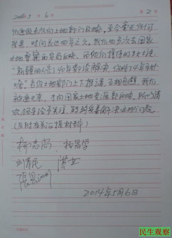他们说,从5.1过后国土资源部没有省上答复也不给登记了。可省、市土地部门又都不给答复,让他们一点办法都没有。西安市土地督察局接待的王女士还给他们解释,“新疆的人告了40多年了都没解决,你这4年算个啥”。