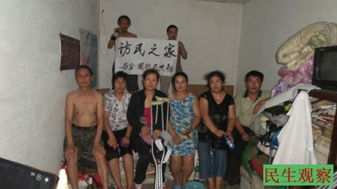 民生观察工作室2014-7-20消息:昨天是每月19日的访民集会日。但在京访民关维双、张素珍、王世清、王春平、朱继德、葛智慧等人打破了往常郊外公园集会的惯例,相约到辽宁访民盛兰福在北京的家里(租住屋)集会。盛兰福高兴的说,这就是咱访民的家,不管有什么难处了都可以到这来,冬天不用在睡路边,夏天可以来乘凉,早点结束有国没有家的日子。盛兰福还举起了访民之家的牌子,誓与全国访民共勉。