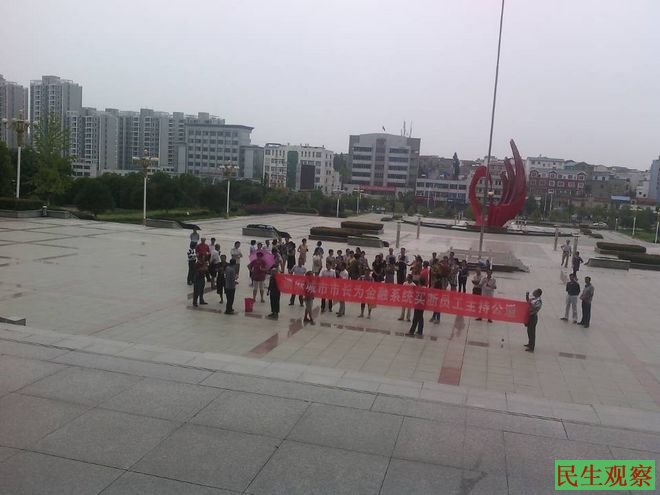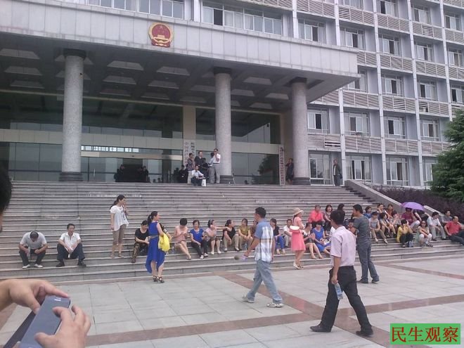 湖北麻城四大银行下岗员工在市政府门口维权抗议