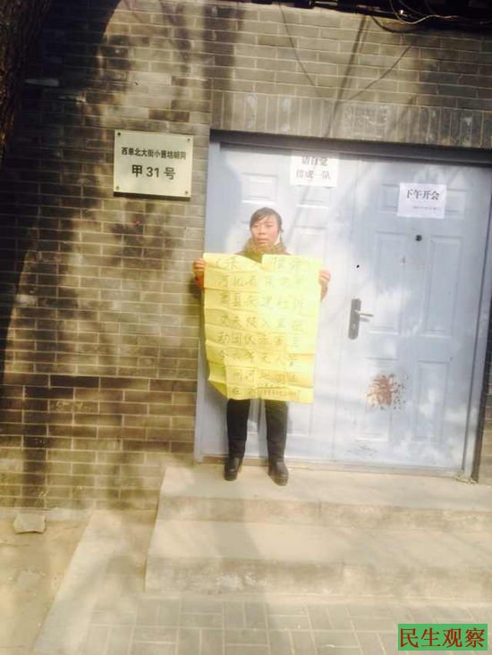 民生观察工作室2014-11-8消息:河北唐县访民朱建红今天被从北京强制带回地方拘留。