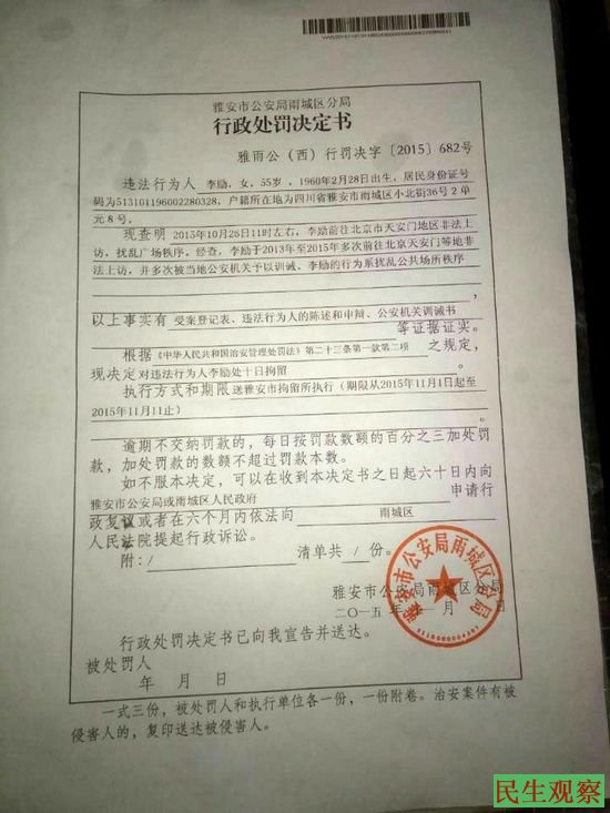 安徽霍邱县访民许菽羽被以“寻衅滋事罪”刑拘
