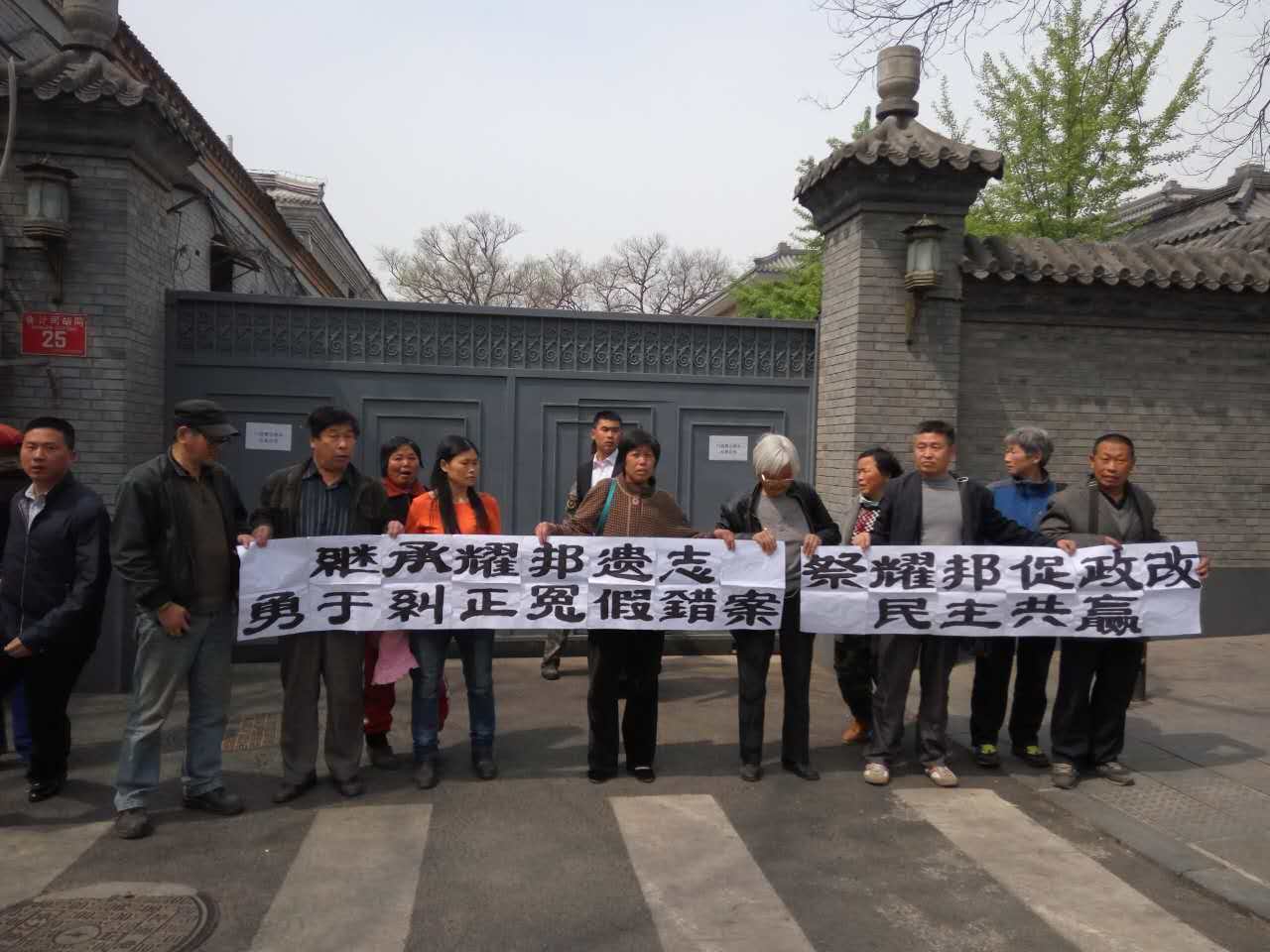 民生观察工作室2016/4/16消息:今天本网志愿者获悉,昨天因祭奠胡耀邦被抓的赵振甲和王青臣(胡耀邦逝世27周年 王青臣、赵振甲拉横幅悼念被抓走失联