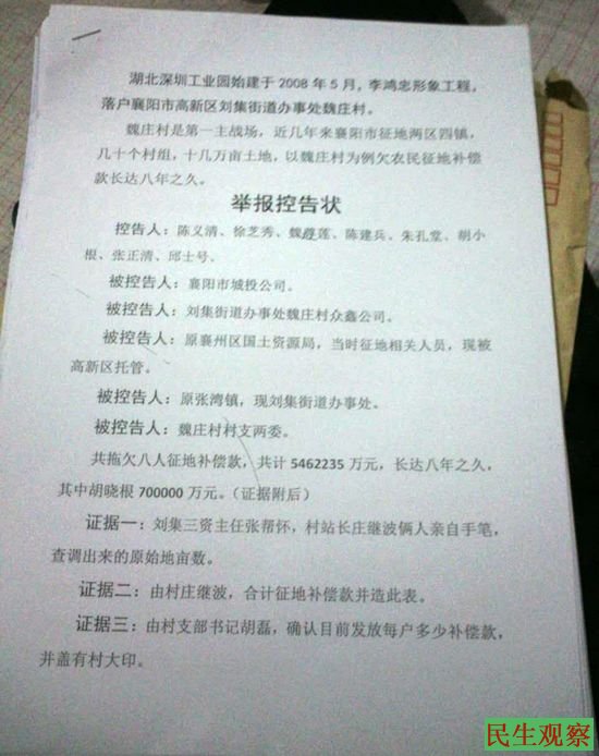 民生观察工作室2016/5/10消息:今天上午10点左右,湖北襄阳高新区刘集街道魏庄村村民陈义清被从家中带走拘留。
