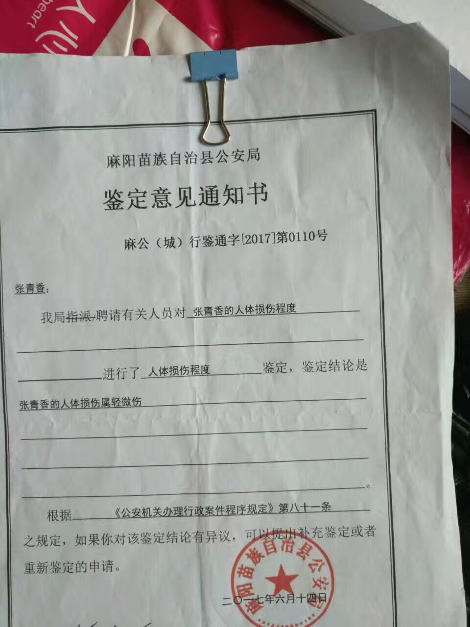 相关报道:湖南麻阳村民张青香婆媳捍卫自家土地被打伤