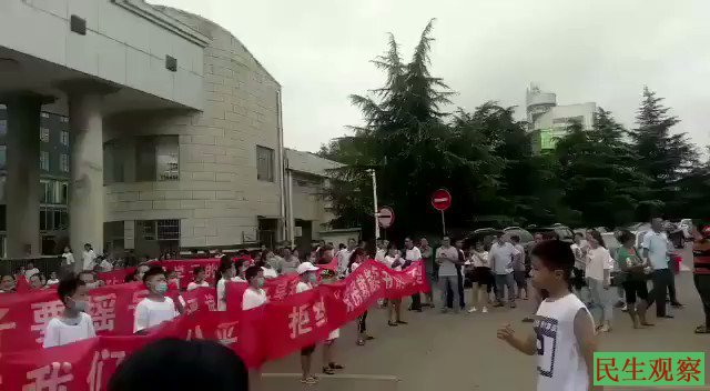 从现场视频可以看到,学生和家长们手举写有:“我们要公平,拒绝有房就能读书的歪理;”“孩子是我们的希望”;“请不要鄙视农民的孩子”;“摇号玷污的是学子的尊严”的条幅。其喊出的口号是:“还我公平,我要上学,拒绝摇号”。随后,现场有许多特警出现,抓走部分家长,现场一度陷入混乱之中。