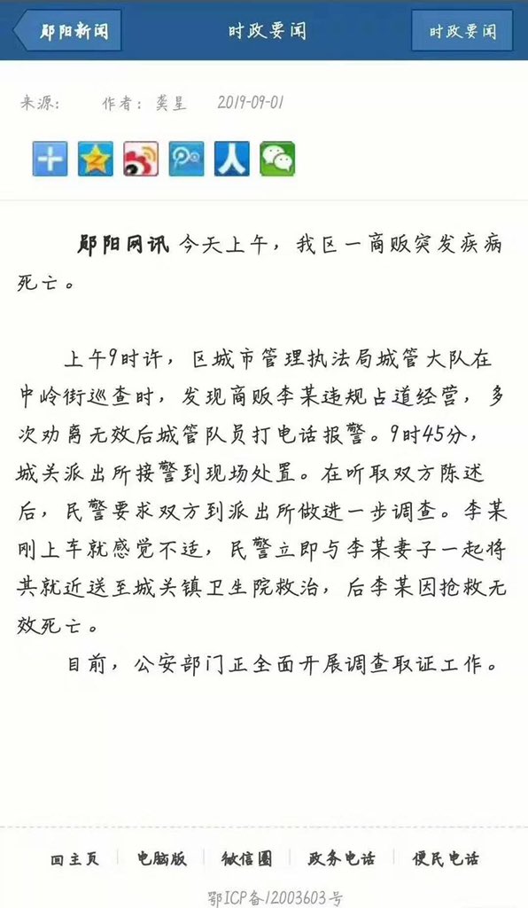 湖北小贩李建忠遭城管围殴后死亡 |