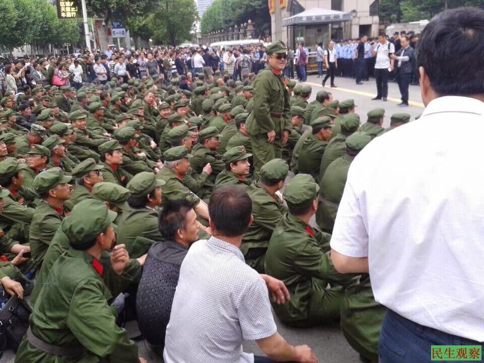 快讯:湖北千名参战老兵齐聚省政府前静坐抗议