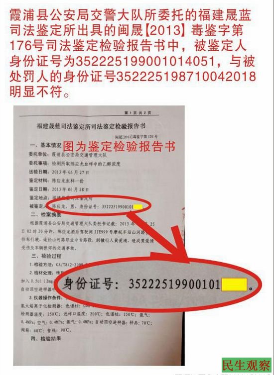 但是福建晟蓝司法鉴定所出具的鉴定检验报告中被鉴定人名字、身份证号码、送检检材名称三者都不一致,特别是检材名称项下为李林,同时,福建晟蓝司法鉴定所对血液的鉴定过程也不符合公安部发布的GA/T842—2009《血液酒精含量的检验方法》的规定。根据《最高人民法院关于适用〈中华人民共和国刑事诉讼法〉的解释”第八十五条“鉴定意见具有下列情形之一的,不得作为定案的根据:(四)鉴定对象与送检材料、样本不一致的;(六)鉴定过程和方法不符合相关专业的规范要求的”等规定,本人认为作为唯一的定罪依据,闽晟【2013】毒鉴字第176号司法鉴定检验报告书互相矛盾、漏洞百出,不具备刑事证据定罪要求的唯一性、排他性,达不到确凿的证明标准,不能作为定案依据。此外,根据《公安机关办理刑事案件程序规定》(公安部第127号令)第八节第二百四十一条“侦查人员应当做好检材的保管和送检工作,并注明检材送检环节的责任人,确保检材在流转环节中的同一性和不被污染”和《关于公安机关办理醉酒驾驶机动车犯罪案件的指导意见》(公交管[2011]190号)第二点第5小点“交通民警对当事人血样提取过程应当全程监控,保证收集证据合法、有效”等规定 ,但在庭审过程中霞浦县交警部门未能提供此类证据。