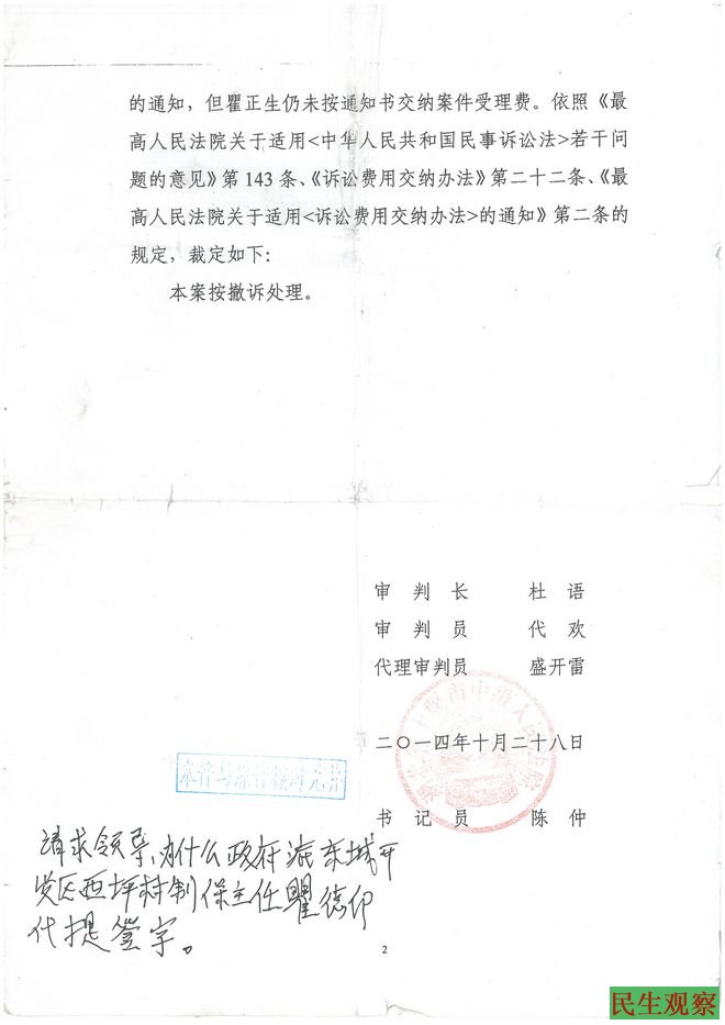 然后,继续动员我降低诉讼标的,我又拒绝后,又叫我交诉讼费342203元,我和我的代理人多次找立案庭据理力争后,又如裁定承认:2014 年2月20日给我发出《通知书》称:“你的起诉数额巨大且缺乏基本证据,诉讼标的与你工作劳动收入严重不符,且诉讼费数额巨大,不属于司法救助的范围,”故要我按规定缴纳诉讼费。”