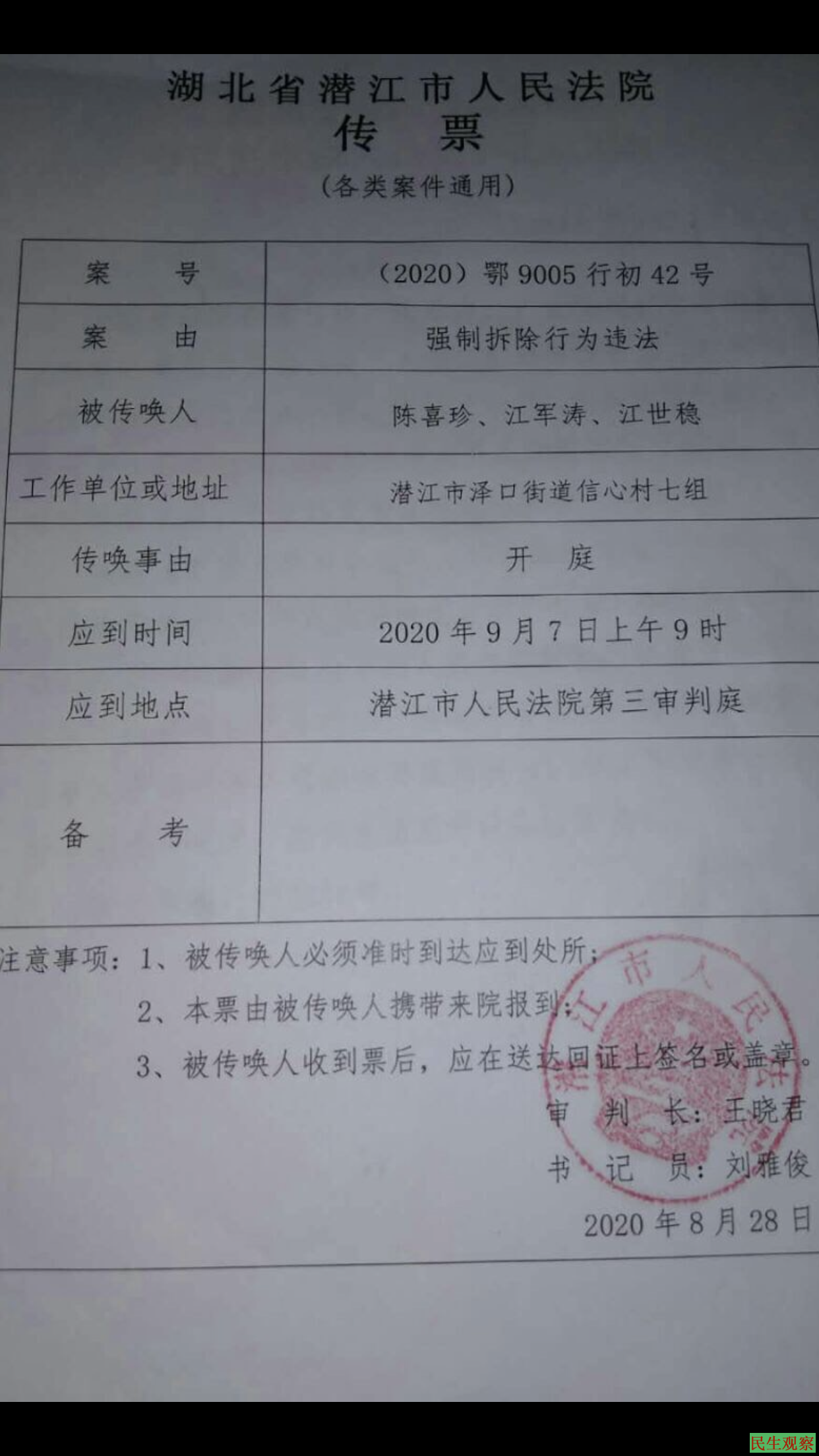 湖北潜江陈喜真强拆案开庭 |