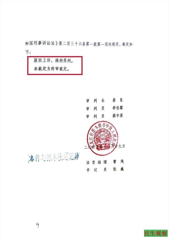 11月19日,佳木斯中级法院二审维持原判,判处肖书君有期徒刑三年六个月,刑期自2025年2月21日至2028年8月20日。