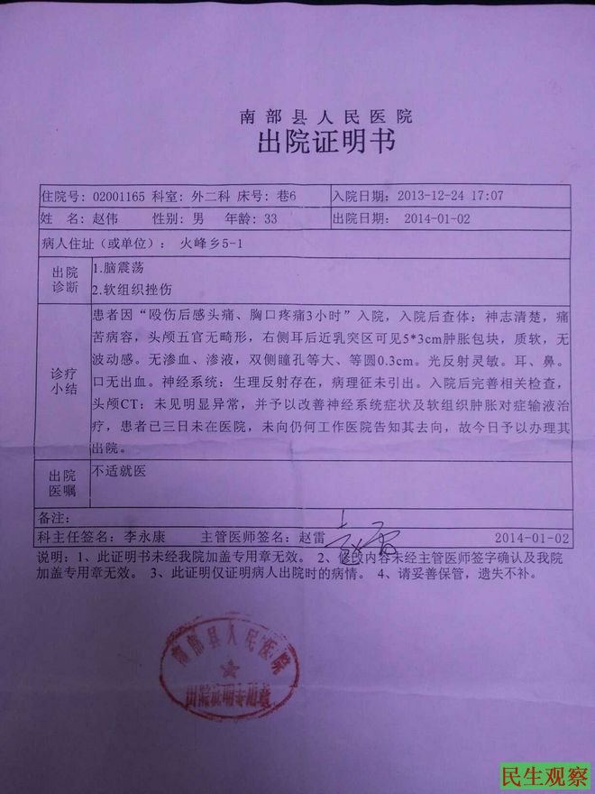 四川南部县赵伟讲述被乡长等人打至脑震荡的经过