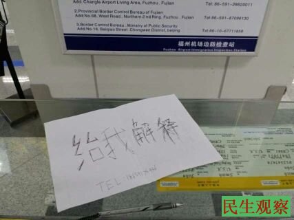 民生观察工作室2014-4-21消息:今日上午,福州青年游豫平欲搭机前往台湾旅行,在长乐机场边防检查站被拦下。