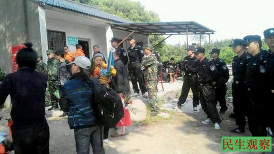 16:10分许,现场网友徐丽媛(音)称,朱承志老先生是被他们强行动手抬下山来的,而网友孙东生则被一个恶警粗暴的推倒在地。