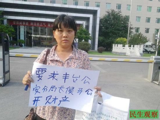 公民马胜芬公安部门前举牌 吁局长公开财产被带走