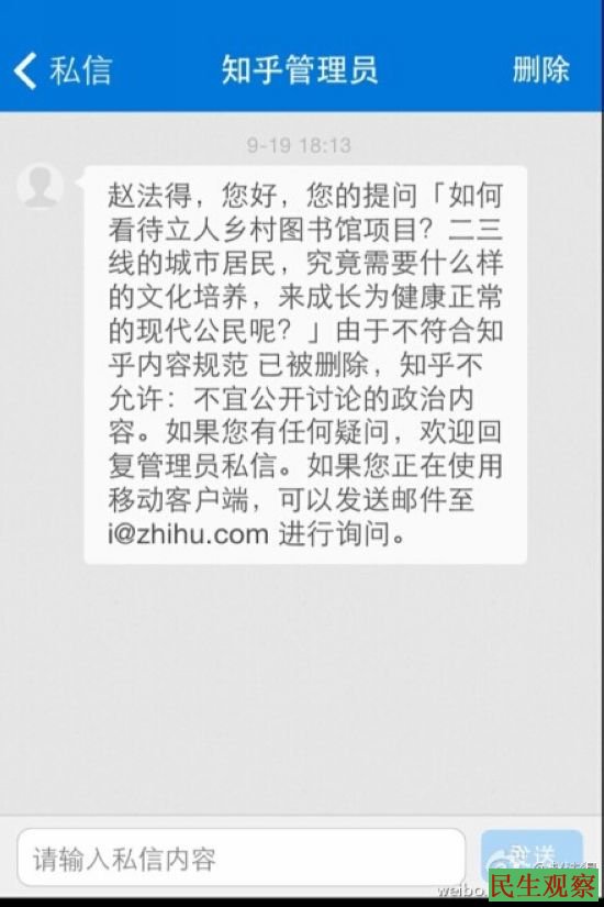 知乎用户“赵法得”也在微博上贴出了知乎管理员删除与立人有关提问的照片。