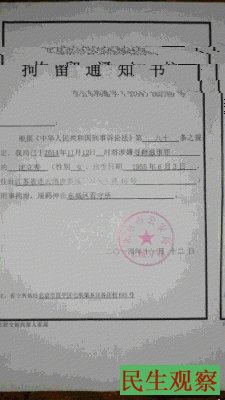 沈立秀的拘留通知书 (责任编辑:民生编辑)