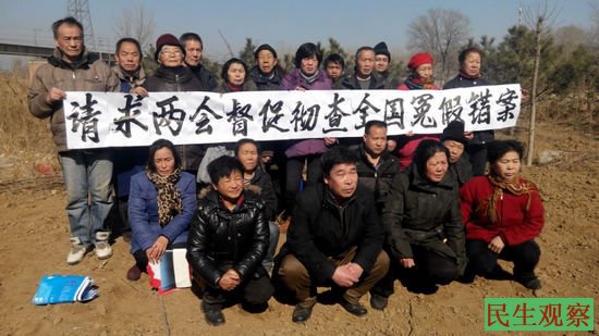 民生观察工作室2015-3-1消息:今天上午,在全国两会即将召开之际,数十名在京访民打出了“请求两会彻查全国冤假错案”和“期盼宪法日后的首个两会落实依宪执政,依法治党,把宪法赋予人民的权利还给人民”的条幅。