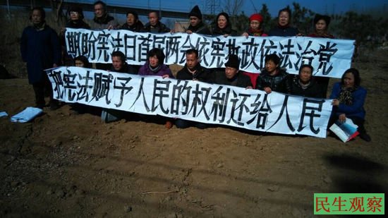 全国两会召开之际数十在京访民打横幅要求还权于民