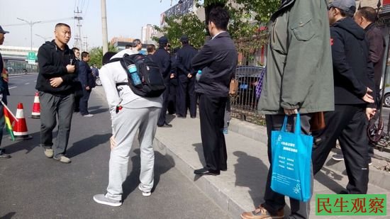 正在这时,忽然有一位中年人开始在法院门口拍照,不久,他的拍照举动就被警察发现,警察便开始要求他出示身份证,在该中年人出示身份证后,警察就拿走了他的身份证。为此,中年人就要求警察们归还他的身份证,而警察们则在众多使馆人员与记者的面前,最终归还了他的身份证。归还身份证后不久,又开始有多名警察要求该中年人到一边去谈谈。对此,该中年人表示拒绝,随即就有多名警察开始动手将他强行拉到了法院门口一外角落与之争论,在辩论了数分钟之后,警察们又动手强行将他推上了警车给带走了。