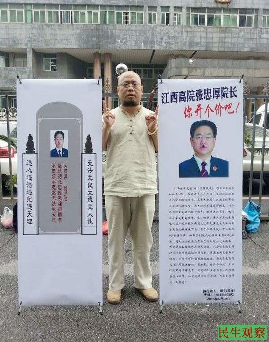 知名维权人“屠夫”江西高院抗议 被处拘留十天