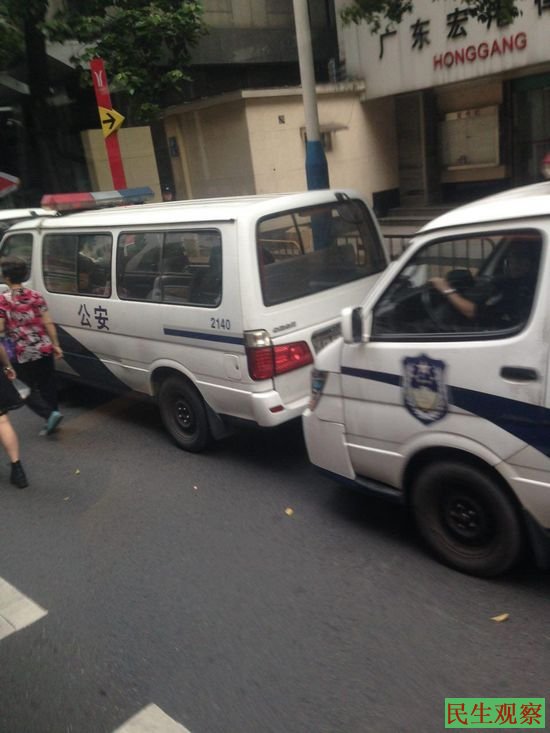 现场其他网友透露,从上午8点开始,广州市中院门口就停放了有警用标志的大巴三台、依維柯两台、面包车七八台,众多制服警察和便衣布控在法院周围的各个路口盘查,孙涛等三位就是盘查时被带走。由于布控严密,现在尚未有公民能进入旁听。