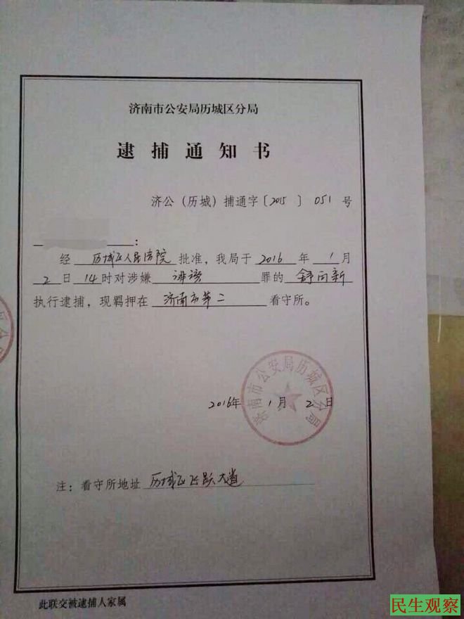 济南舒向新律师因涉嫌诽谤罪被公安逮捕 |
