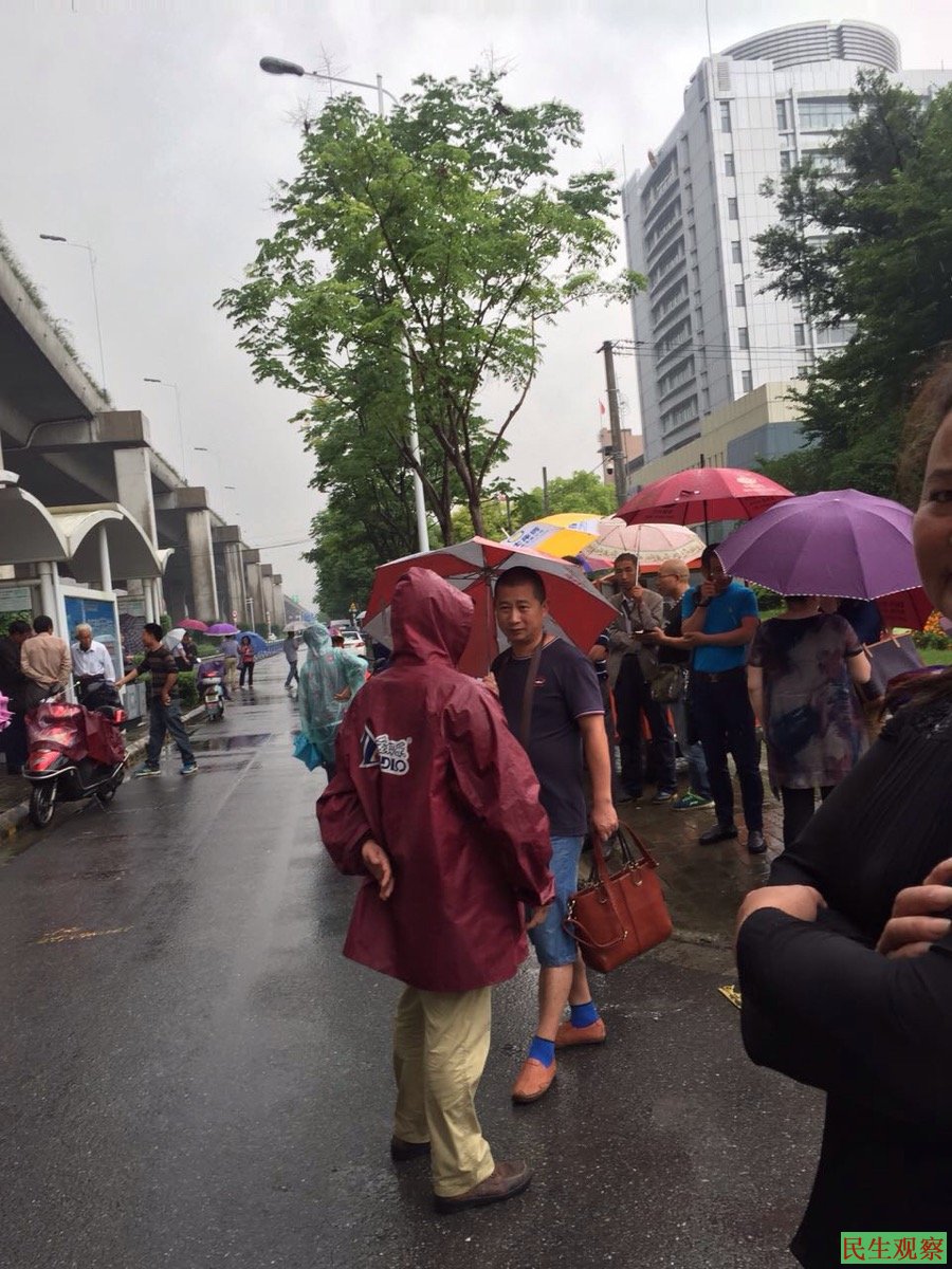 图为维权人士冒雨声援单利华