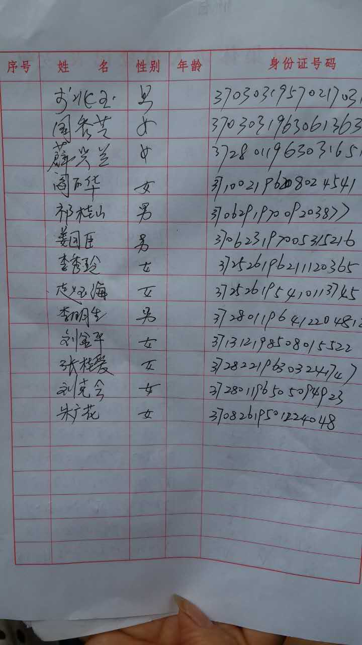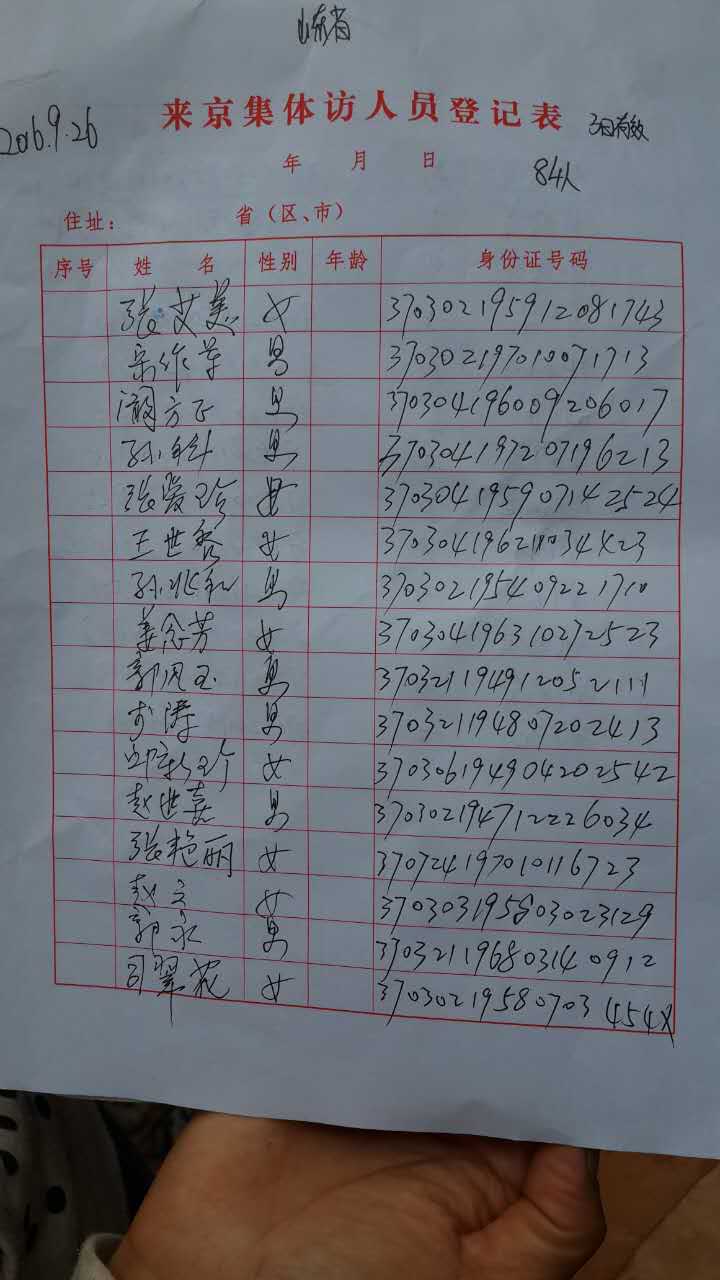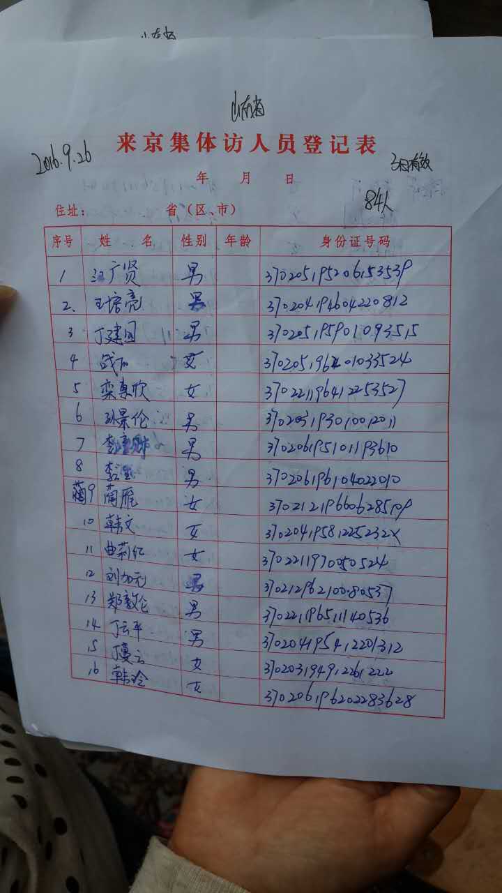 山东集访人员名单: