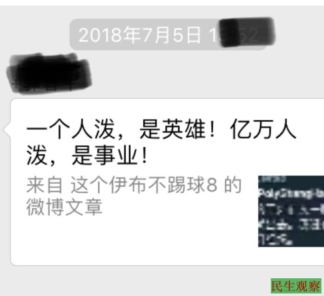 【民生观察2018年7月17日消息】本网获悉,湖南籍女孩董瑶琼,因在上海泼墨习近平画像遭当局抓捕,其父亲董建彪与维权艺术家华涌亦被抓捕,今获悉华涌被国保带走旅游,董建彪则被湖南邵阳当局带走后失联。另悉,新浪博友伊布(网名)因撰写《一个人泼,是英雄!亿万人泼,是事业!》的文章声援泼墨女孩董瑶琼遭“喝茶”。