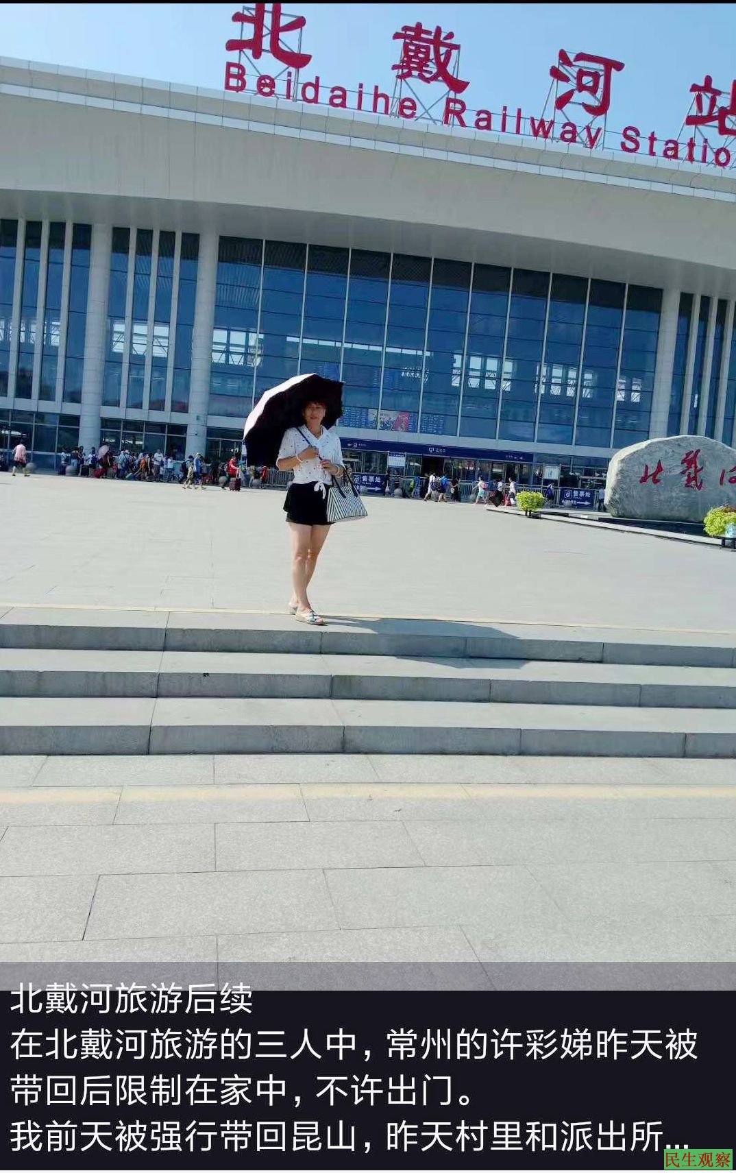 【民生观察2018年8月15日消息】本网获悉,江苏昆山访民王和英因在中共北戴河会议前到北戴河旅游,8月2日被其辖区政府绑架回家稳控。8月14日,王和英的律师朋友常玮平、黄志强、吴绍平得到消息后前去解救她,但也遭维稳人员拦截。随后,律师报警处理,但警方不出警,举报到公安局督查处也不予理睬。