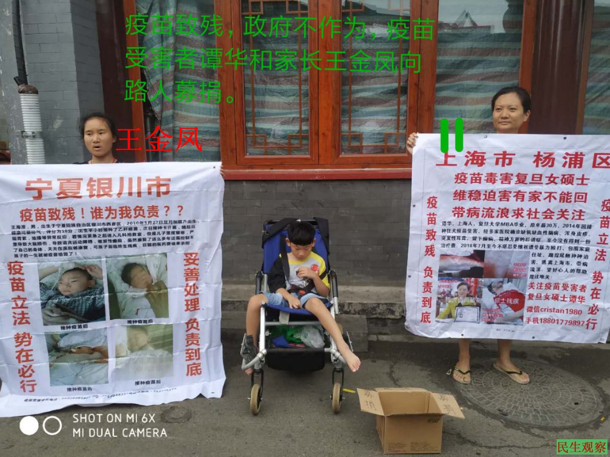 何方美称,王金凤的孩子因疫苗致残,基本上不说话,行走也困难,大小便不能自理,全靠妈妈照顾,王金凤在北京维权多年,却一直没有结果。为了生活,母子俩就靠卖点儿童的东西维持生计,生活非常困难,可当局不但把人带走,还把她的财物抢走了。目前,王金凤处于失联状态,希望媒体给予关注!