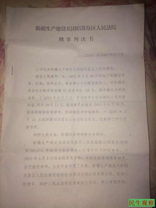 【民生观察2018年9月7日消息】新疆访民张建华在2018年元月15日被抓后一直关押在新疆伊犁看守所,在此前她一直被当地骚扰,张建华多次在微信群发出信息,也多次告诉其她朋友,在张建华被抓后,家人老公与孩子都被随之抓进法制学习班一直关押到张建华被判刑后才放出她老公与孩子。