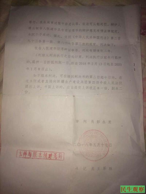 张建华因2012年在第四师74团二连种植的1750亩蚕豆地被伊犁州绿野农业科技有限公司出售的农药药害,导致其全部绝收。本人对第四师人民法院、昭苏垦区人民法院、伊宁垦区人民法院的判决不服。他们和伊犁州农业局、被告伊犁州绿野农业科技有限公司上下结勾结、串通一气、坑农害农、置老百姓的死活不顾、欺上瞒下、违法判案、枉法裁判。使我的案子在当地无法依法得到解决,无奈之下我在2013年底到2014年一直在北京告状,多次被昭苏垦区公安局抓回拘留。