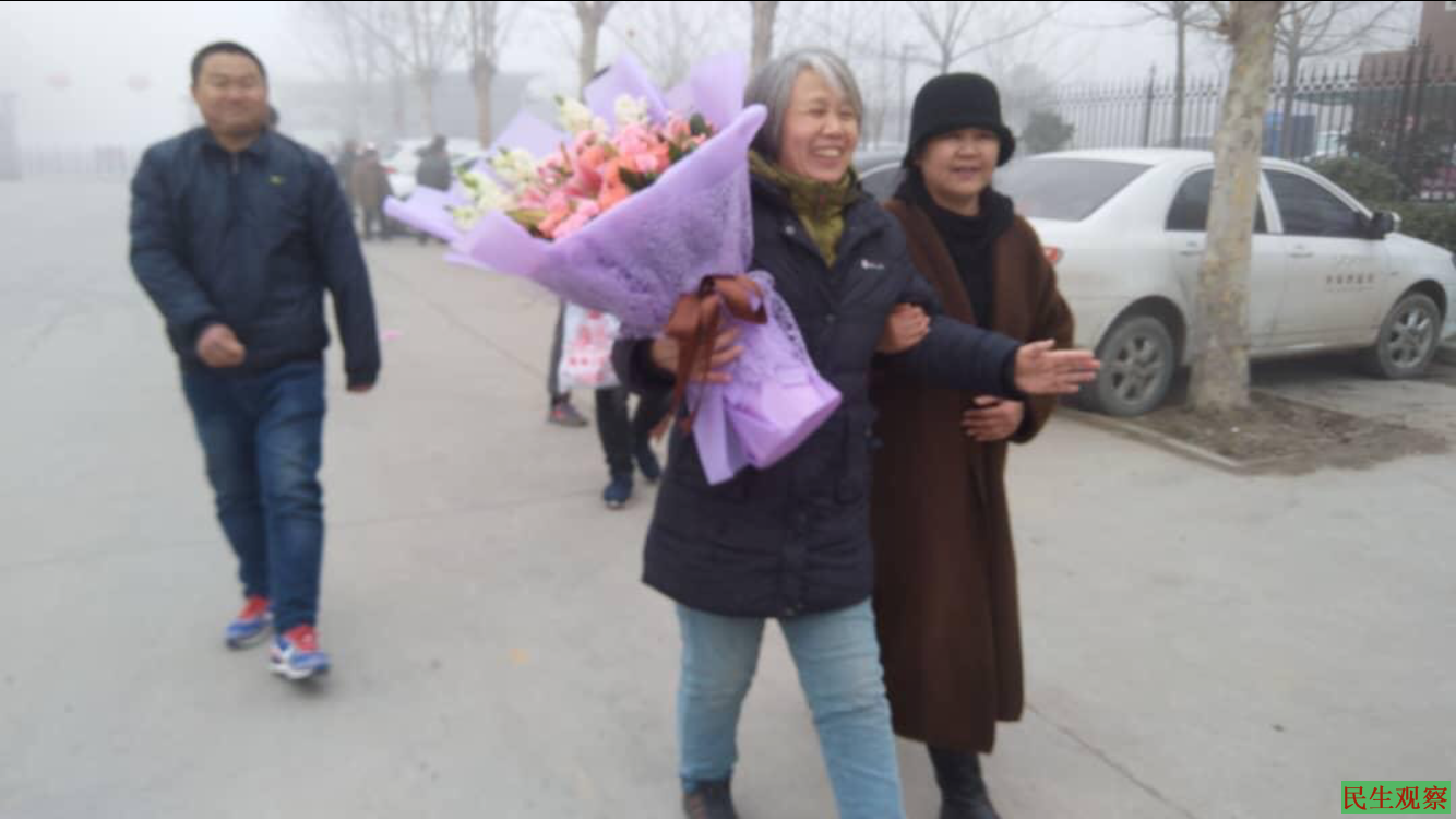 中午将近12点,李玉凤女士手捧鲜花,在朋友们的簇拥下走出了“郑州女子监狱”的大门。焦作公安便上前要求李女士坐他们的车回焦作,当即被李玉凤拒绝“我不坐你们的车回去。我自己宁愿坐汽车回家,也不坐你们的车,你们没有权力限制我。”
