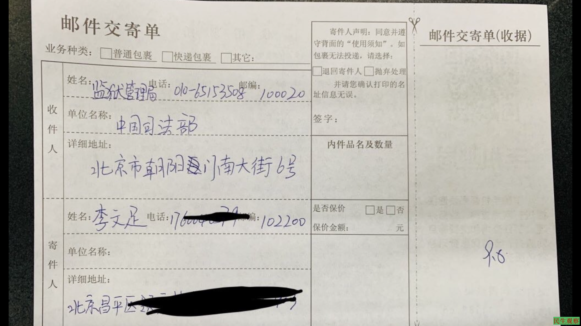 周五(11月29日),李文足致信司法部监狱管理局,要求监狱管理局敦促临沂监狱改善此不人道做法,立即安装取暖设施,并表示”不要用寒冷改造‘犯人’,要用温暖感化他们”。