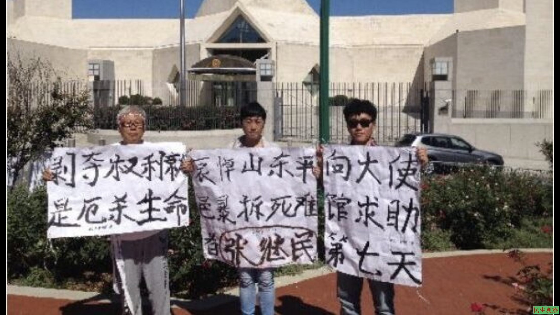 随后,任东明发消息告诉访友说,2020年1月15日下午17点10分,本人在北京市国家信访局大门口东15米处被不明身份6人强制绑架到鲁FN917D的银灰色商务车拘禁,国家信访局大门口当时有几名保安看见了情况,并听见了我大喊“警察抢劫我要报警”,但是那些保安不履行安保职责,就站在街边眼睁睁的看着我劫匪劫走。