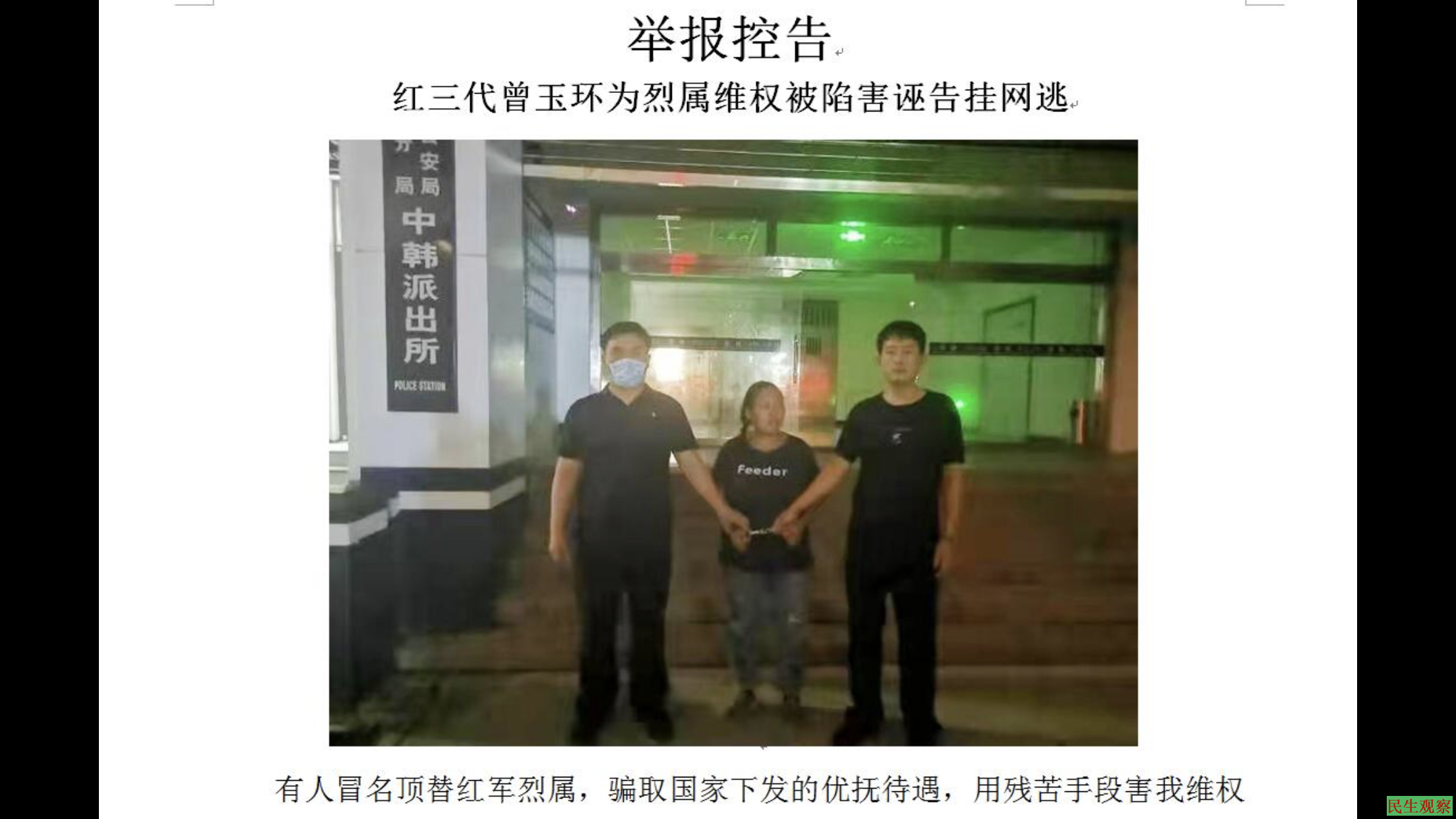 红三代烈属曾玉环维权被陷害诬告 |