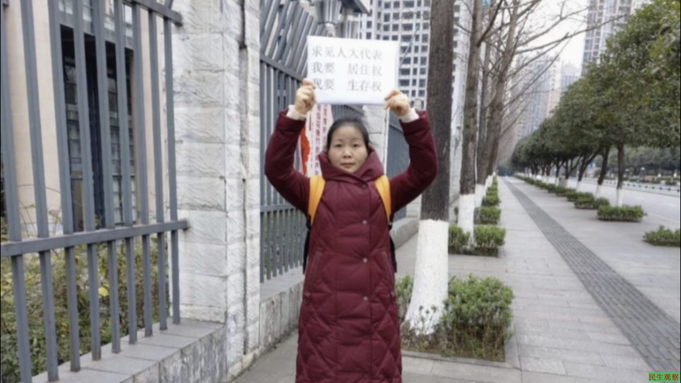 据悉,重庆访民胡贵琴家住重庆市渝北区,因其住房及商铺在三年前被强拆而上访,当时胡贵琴家里的空调、冰箱、衣物、被盖等一切财产都被非法摧毁(非司法强拆),房屋被摧毁后胡贵琴无家可归,遂开始进京上访。