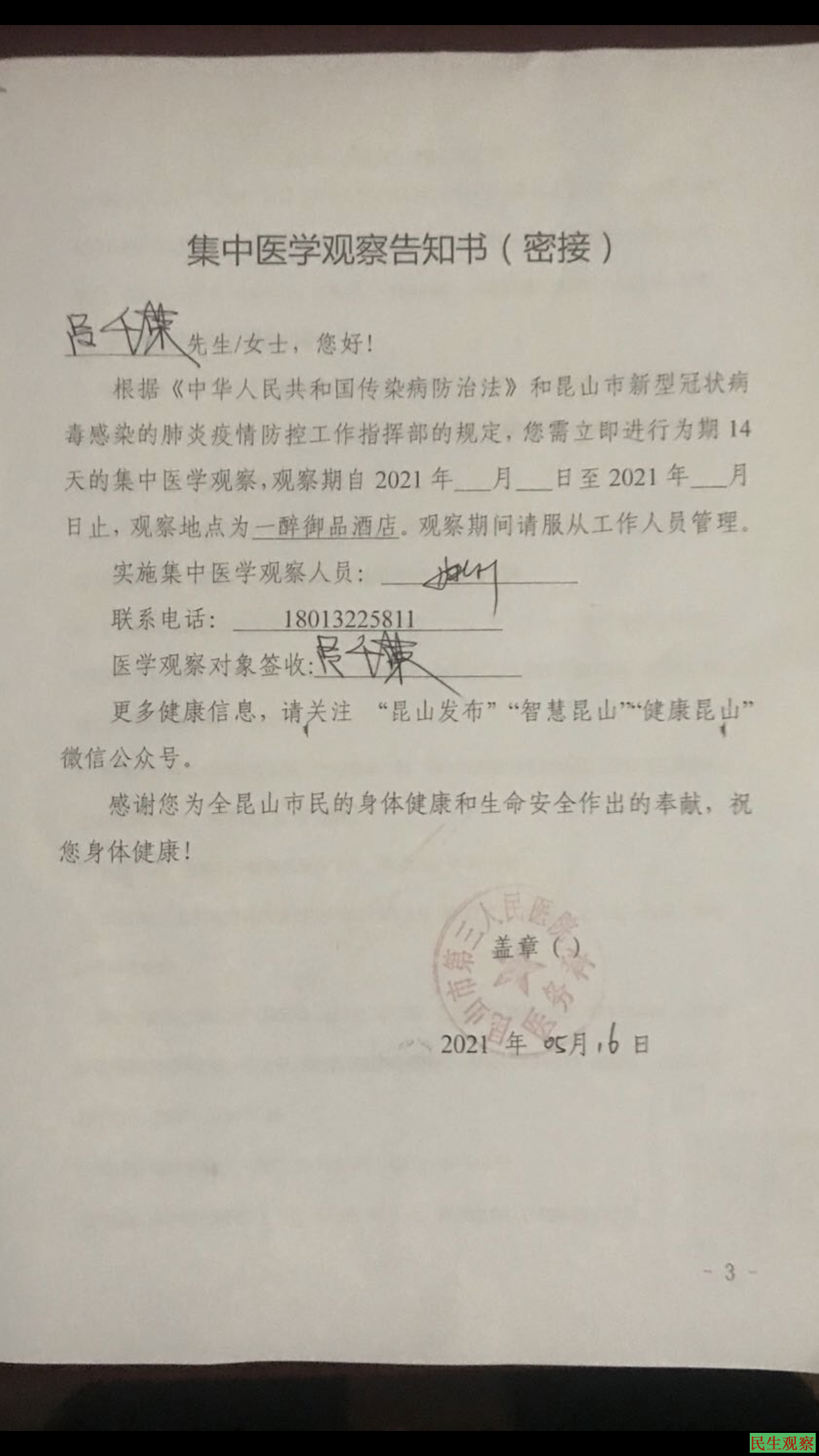 【民生观察2021年5月17日消息】近日,长期被公开监控迫害的网络作家诗人时评人安徽吕千荣,前往苏州昆山参加王和英茶庄开业典礼,却两次被国保警察抓进派出所讯问,目前被强行带往昆山《一醉御品》酒店进行医学隔离观察十四天。