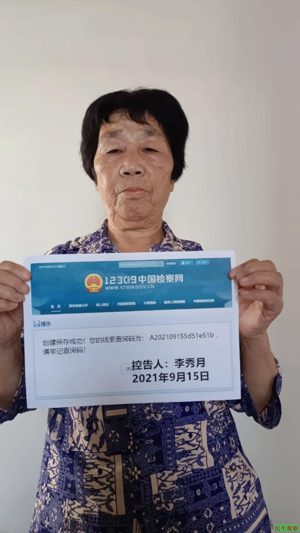 【民生观察2021年10月3日消息】2021年9月14日早上,福建省连江县的李秀月背负天大冤屈,途中历经磨难,到达北京公安部信访办门口排队上访。由于是新冠肺炎疫情期间,须经门口安保和防疫措施检查才会被允许接访。当打开手机检查健康码时,李秀月愣住了,发现手机竟莫名其妙停机了,致使她无法打开健康码通过安检而无功而返。李秀月上访无果下不得已到附近移动营业厅询问情况,电脑一查得知并非欠费,而是被当地警方刚刚以“办案”为由勒令停机。
