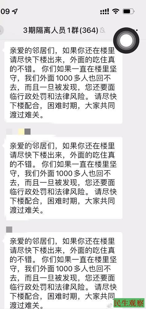 网友“INVINCIBLe啊之”称,“然后大家全部在报警,警察回复:如果作为公民我也很气愤这种行为,但决定改变不了,会把楼内每户的门都打开确认还有没有人藏匿在屋内;打政府电话投诉,回复说不是政府行为也不是防疫办的人员。”