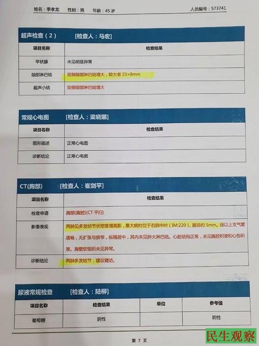 被耽误的还有季孝龙急需治疗的牙周病、皮肤病,以及体检出的多病症,上次服刑期间,季孝龙已深受牙痛之苦,无法咀嚼;在白茅岭监狱服刑期间,被褥是很脏的黑心棉,令他患上严重的皮肤病,出狱后身上布满红斑;出狱后季孝龙体检出多病症,尤其肺部多发结节,季孝龙2019年初冬曾在浦东看守所吐血。