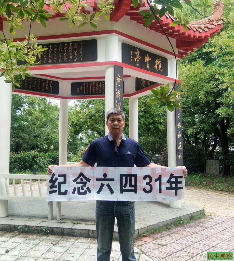 陈思明多年来坚持纪念六四,2017、2018、2020、2021年4次举牌纪念六四,4次均被送往拘留所拘留;2019、2020和2022年六四期间三次被国保带往外地强制“旅游”。
