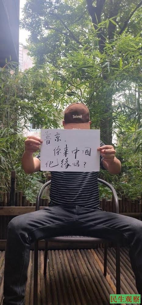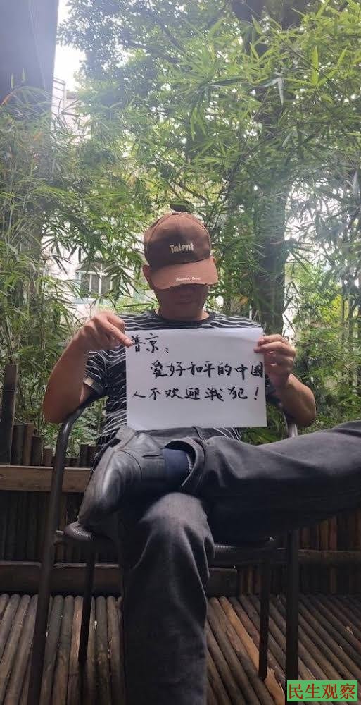 5月16日,湖南耒阳网友江水平向普京喊话:“普京,爱好和平的中国人不欢迎战犯!”“普京,你来中国化缘吗?”