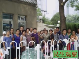 昨天没有下雨,但8月6日的蒙蒙雾气让人们浑身湿漉漉的汗流不止。为人权坚守的人们像“锅贴儿”一样牢牢的贴在外交部门前酷热蒸腾的地上享受蒸、烤。