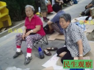 白发的老娘啊,您们离开这里回家吧,回家凉快凉快歇歇吧!我知道您们的家被强拆了,财产被抢光了,我知道您们辛勤劳作了一生却没有拿到退休金,我知道您们都是奔80的人了,去闺女家吧,去儿子家吧,唉,我知道您们的闺女、儿子家里也不宽敞……,中国有20亿人呢,中国的GDP……