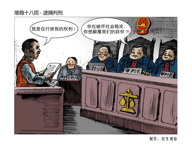 中国维稳十八招系列漫画与行为艺术之“逮捕判刑”