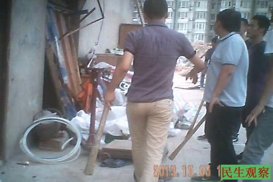 )。今天晚上,黄中沿再次发来消息说,今天下午唐家墩拆迁办的人员派出多名人员,到他家用铁锤打砸逼迁,下面是今天的现场图片: