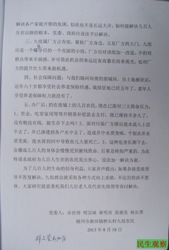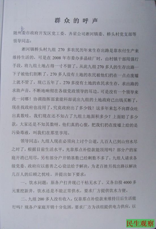 湖北省随州市淅河镇桥头村九组农民的呼声